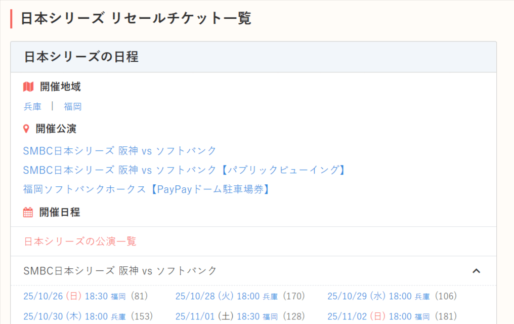日本シリーズは非常に人気が高いため、一般発売開始後すぐに完売となることが予想されます。もし正規のルートで入手できなかった場合でも、機材席の開放などによる「見切り席」が後日販売される可能性があります。